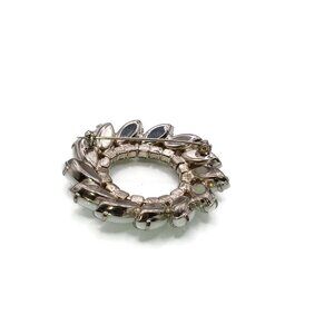 This stunning vintage brooch features a lovely white milk glass design with prong set rhinestones. The large 2" diameter size makes it a perfect accessory to elevate any outfit. In good condition, this brooch is a must-have for any fashion-forward individual.
