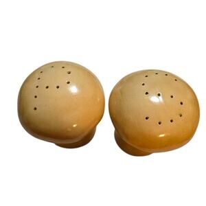Vintage Large Mushrooms Ceramic Salt Pepper Shakers Kitsch Decor Mod MCM Missing the stopper on one shaker