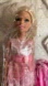 Blondie doll wearing American girl pink dress with floral detail.