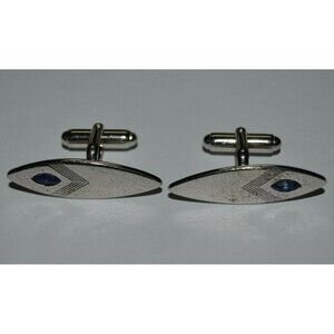 Vintage Large Oval Chrome Silver & Blue Stone Mid Century Modern Cuff Links RARE