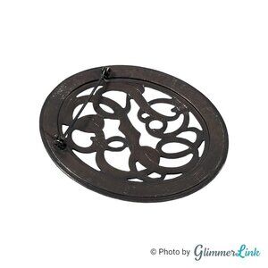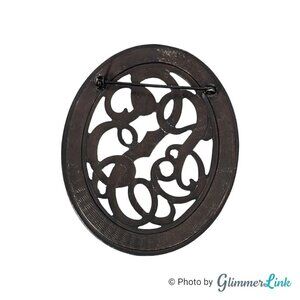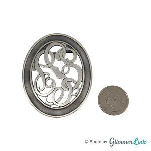 Vintage Large Oval Open Scroll Work Silver Tone Brooch