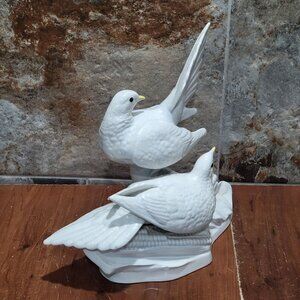 Vintage Large Porcelain Pair White Doves Bird Figurine Repaired