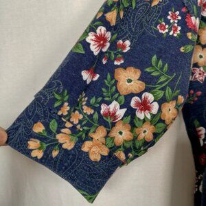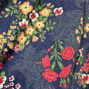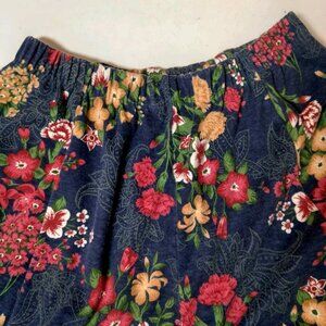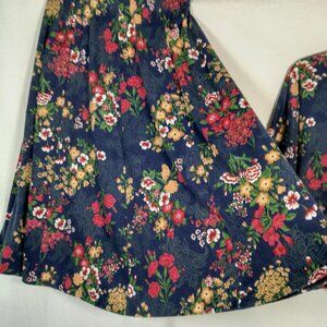 Vintage Large Skirt And Shirt Knit Outfit Set Blue Floral Cottagecore Soft USA