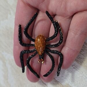 Vintage Large Spider Pin (Brooch) Orange and Black