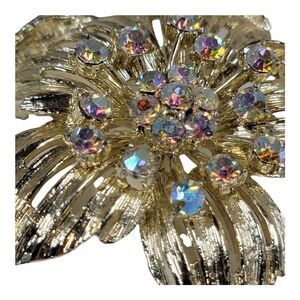 Vintage Large Statement Aurora Borealis Rhinestone Flower Cluster Brooch Pin