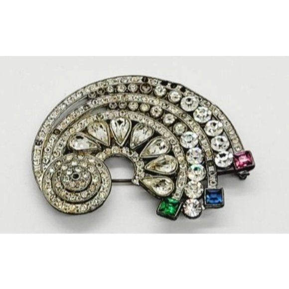 Vintage Large Statement Rainbow style Crystal Rainbow Brooch Pin