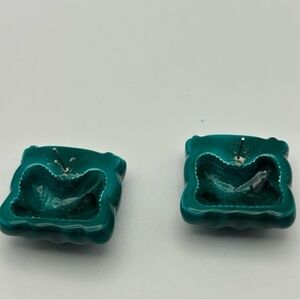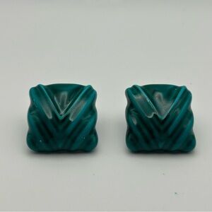 Vintage Large Statement Teal Blue Textured Puffy Square Stud Earrings Unique