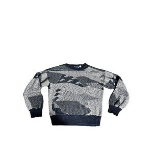 Vintage Large Sweater Graphix Abstract All Over Pattern Black Grey Crosby Y2K