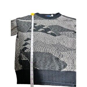 Vintage Large Sweater Graphix Abstract All Over Pattern Black Grey Crosby Y2K
