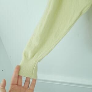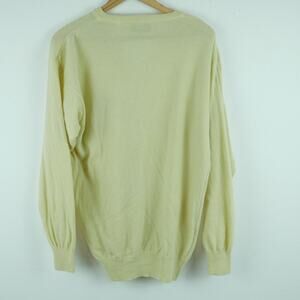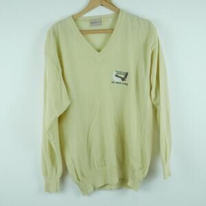 Vintage Large Sweater V Neck Embroidered Eagle Preppy Golf Butter Yellow Grandpa