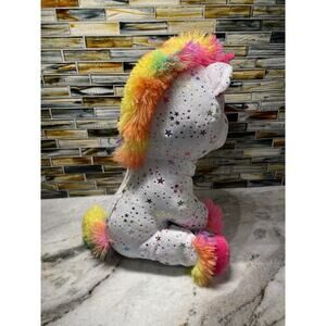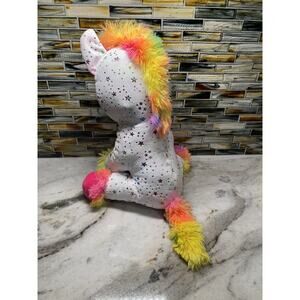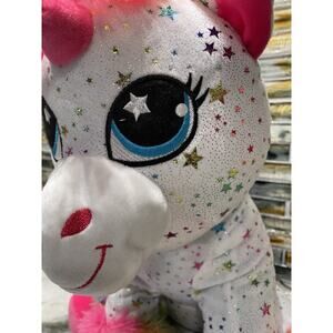 Vintage Large Unicorn White Pink Blue Sparkle Stars Plush by Peek A Boo Toys