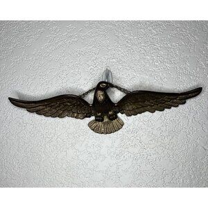 Vintage Large Wall Hanging Solid Brass Flying Eagle Plaque 18” Long Patriotic