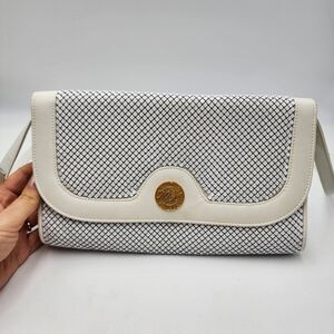 Vintage Large Whiting and Davis Mesh Purse White with Gold Tone Trim Leather
