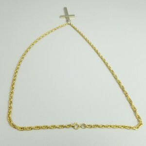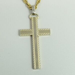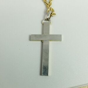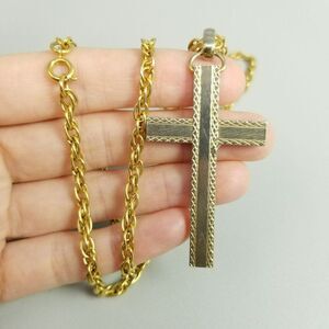 Vintage Large Cross Pendant Necklace Gold Tole Chain, 2 Inch Cross 23 Inch Chain