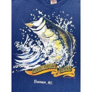 Vintage Large Mouth Bass Fish T-Shirt XL Blue Missouri Single Stitch