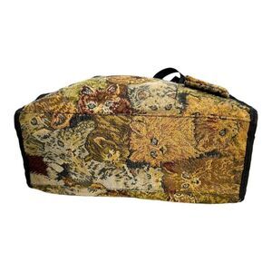 Vintage Large Tapestry Cat Print Tote Bag With Zipper & Handles Shopping Bag