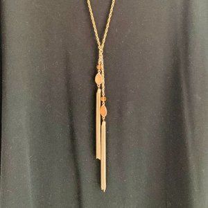 Vintage champagne color lariat necklace with faceted glass and chain tassels. The necklace is around 24" long and can be adjusted.