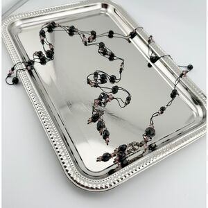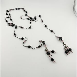 Vintage Lariat Necklace Black Pink Beads Glam Sparkle Boho Goth Luxury Versatile
