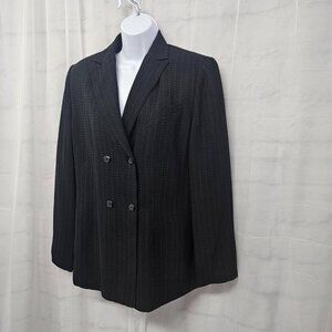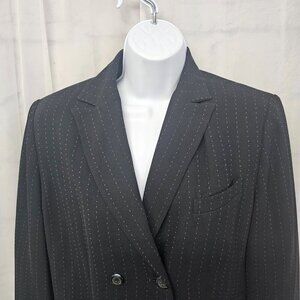 Vintage Larry Levine Black Blue Striped Double Breasted Blazer Office 10