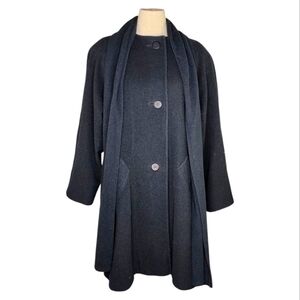 Vintage Larry Levine Black Wool Blend Coat w/ Attached Scarf Size 10