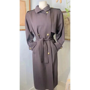 Vintage Larry Levine Gold Button Double-Breasted Brown 80s Trench Coat Size 4