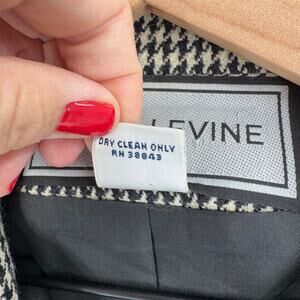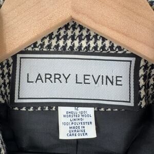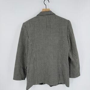 Vintage Larry Levine Houndstooth Wool Blazer Black White Check Jacket Size 12