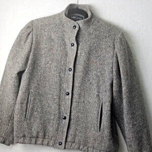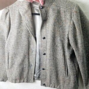 Vintage Larry Levine heather tweed bomber jacket button pockets women's 10-12