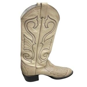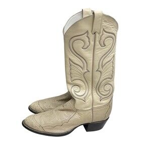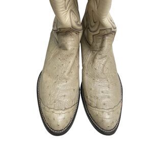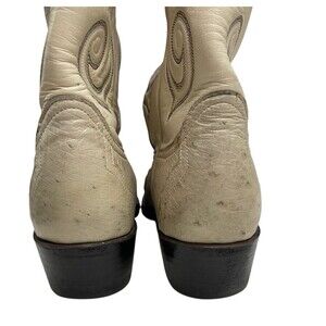 Vintage Larry Mahan Pin Quill Ostrich Cowboy Boots Size 10B Cream Wingtip USA