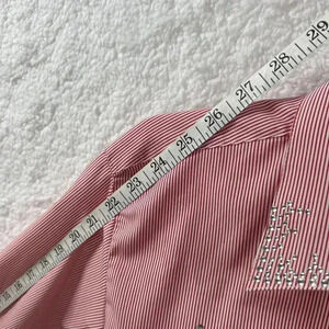 Stylish red striped button shirt from Las Olas, adorned with beautiful rose embroidery and rhinestone accent s. Made from a polyester-cotton blend, this long-sleeved western blouse is perfect for fashionable women.