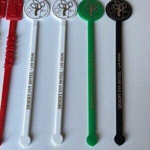Las Vegas set set of ten vintage hotel drink stirrer swizzle sticks. In good vintage condition.