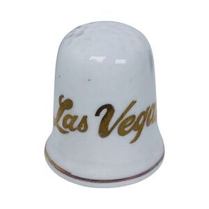 Add a touch of vintage charm to your sewing collection with this Las Vegas Collectable Thimble. Featuring a delicate purple flower design on a white ceramic base with gold trim, this thimble is a true treasure for any collector. Made in the United States, this Vintage Original piece is perfect for those who appreciate the beauty of bygone eras. Whether you're an avid thimble collector or simply looking for a unique addition to your sewing kit, this item is sure to impress.