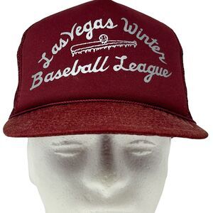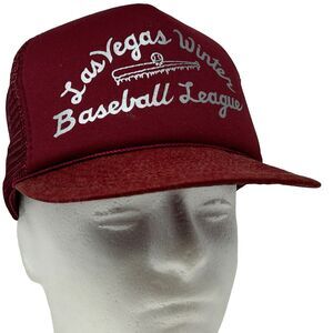 Vintage Las Vegas Winter Baseball League Trucker Hat Cap 80s Red Mesh Snapback