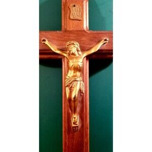 Vintage Last Rights Crucifix W/ Empty Holy Water Vial Stations of the Cross Sick Call Wood With Metal Details 12"X8"X2" Light Wear