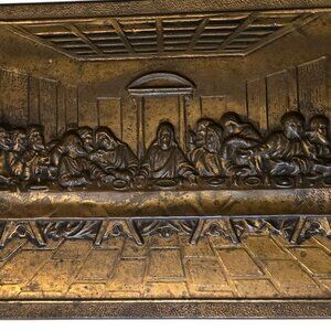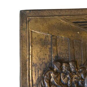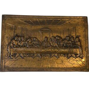 Vintage Last Supper Metal Plaque Wall Art Made In England Distressed Tarnished