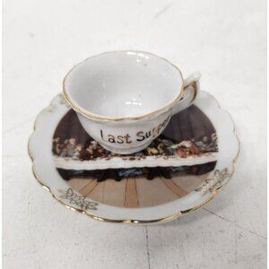 Vintage Last Supper Miniature Porcelain Cup & Saucer Jesus & Disciples Religious