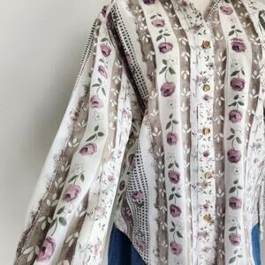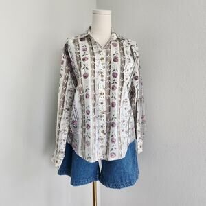 In excellent vintage condition a patch work floral stripe prairie button down shirt in size medium