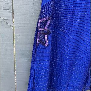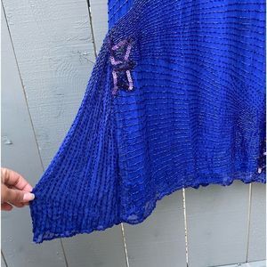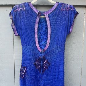 Breathtaking dress that is sure to capture the attention of everyone in the room. This vintage beaded dress is very beautiful and the color is magnificent. It is heavy and In great vintage condition. It was sewn together at some point right below the zipper. Please see last pictures.