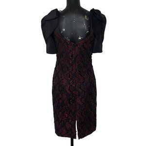 Vintage Late Edition Sequins and Ribbon Evening Cocktail Dress in Burgundy and Black Size 14