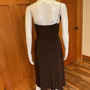 EUC, Dark brown, beaded strap, low cut dress by Shelli Segal. 1995 union tag . Made in the USA.