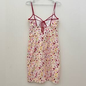 Vintage Laundry by Shelli Segal dress. 100% cotton. Made in the USA circa 1995. Size 2. Cute tie detail in back. Zipper closure. Abstract floral print. Approximately 16” pit to pit and 35” in length.