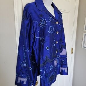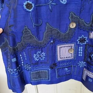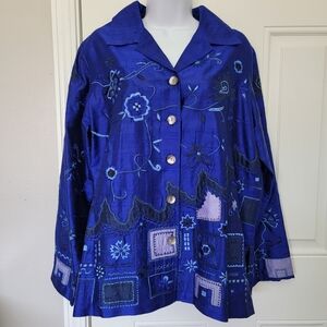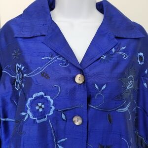 Vintage Laura Ashley 100% Silk Embroidered Jacket Womens Sz M Grandma Core Artsy
