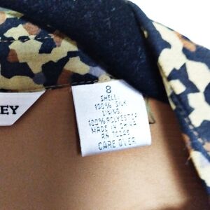 Vintage Laura Ashley 100% Silk Leopard Print Blouse. Long sleeves. Sleeves are sheer; body is opaque. Collared. Hidden snap buttons. Animal print.