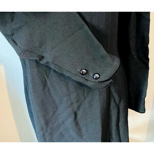 Crafted from soft black wool, this women's size 12 dress combines comfort with classic style. It has a modest and elegant cut with a slight fit at the waist and a 38" shoulder-to-hem length.