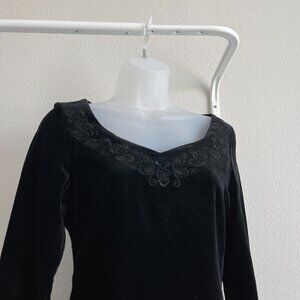 Vintage Laura Ashley Black Long Sleeve Velvet Embroidered Floral Dress Size 4 | Whimsigoth Gothic Fashion
