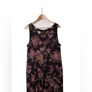 Vintage Laura Ashley Brown Pink Purple Floral Rayon Midi Dress US 10 UK 14