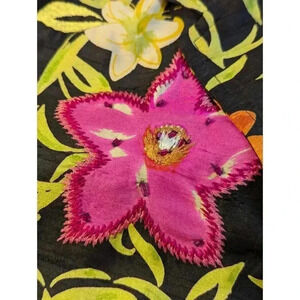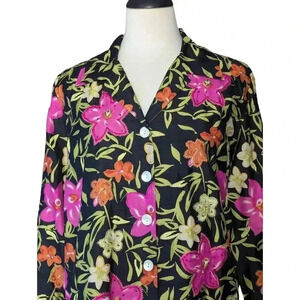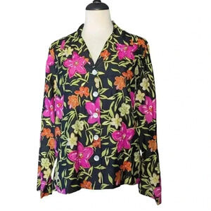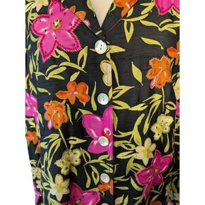 Vintage Laura Ashley Large 100% Silk Floral Blazer Beaded Embroidered Button Up