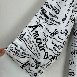 Vintage Laura Ashley Linen French White Black Convertible Sleeve Top PM