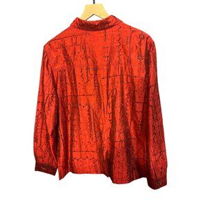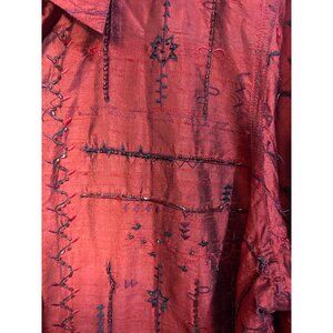 Vintage Laura Ashley Red Embroidered Silk Button-Up Blouse XL