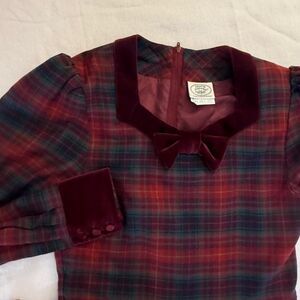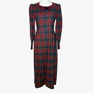Vintage Laura Ashley Tartan Plaid Dress with Velvet Bow
