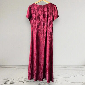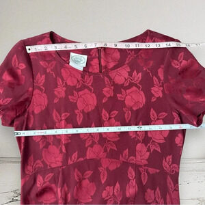 Vintage Laura Ashley Whimsigoth Dress Satin Floral Midi Dress in Burgundy Size 6